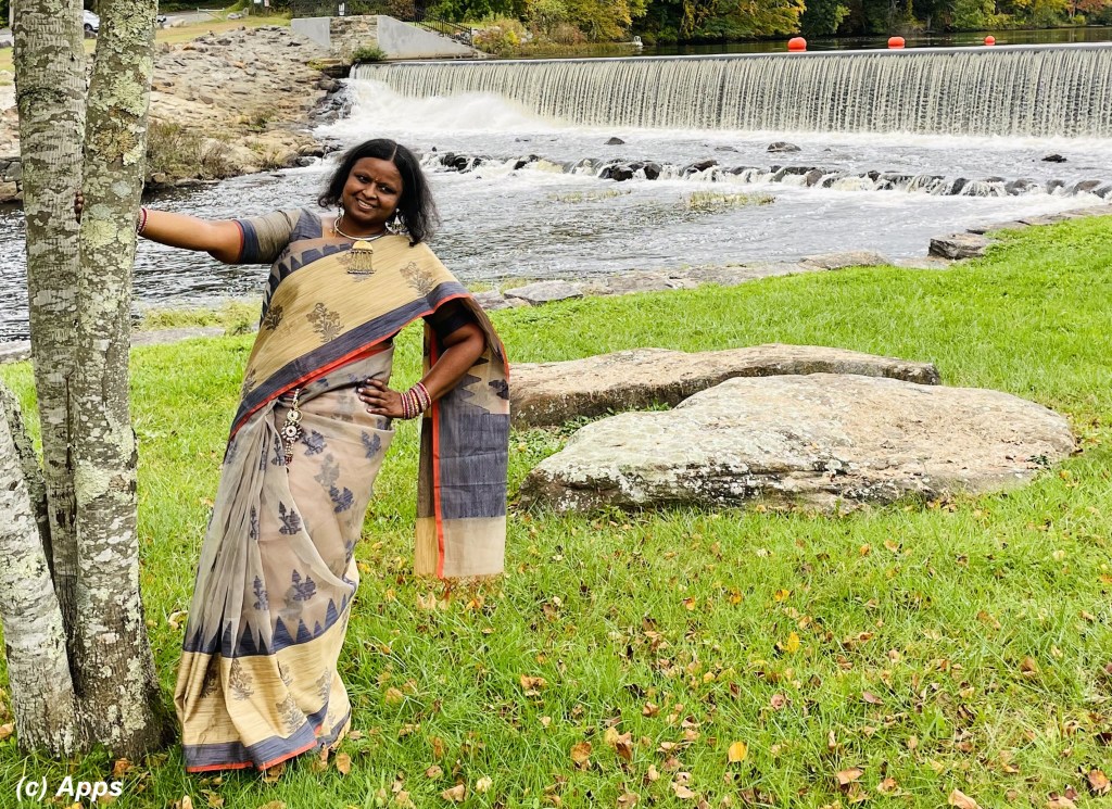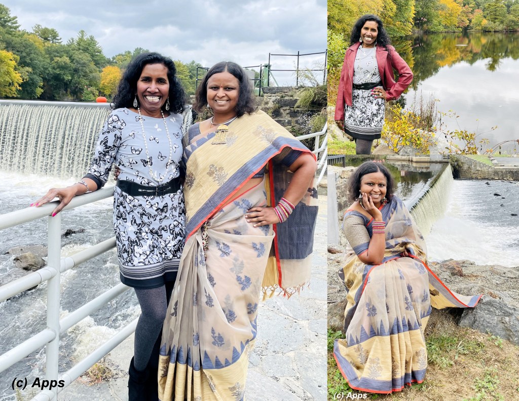 For my Navratri Ke Nau Rang (= Nine Colors of Nine Nights) themed celebration of the Dusshera, the 10-day Indian festival, for Day 3 we did a little photoshoot to capture the fall colors also in the background. We came across Eagleville Dam pictures on a photography Facebook page and decided to try our photoshoot there.