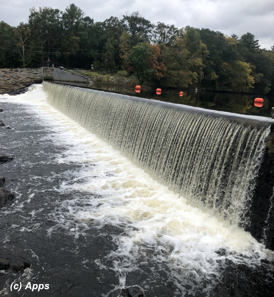 Eagleville Dam is part of Eagleville Pond located in Coventry and Mansfield on the Willimantic River. The 18 ft. dam was restored in 1994 causing this gorgeous flow of water that can only be interpreted as a mini waterfall. Surprisingly the lake is very transparent giving perfect reflection of the trees surrounding it and thus the colors too.