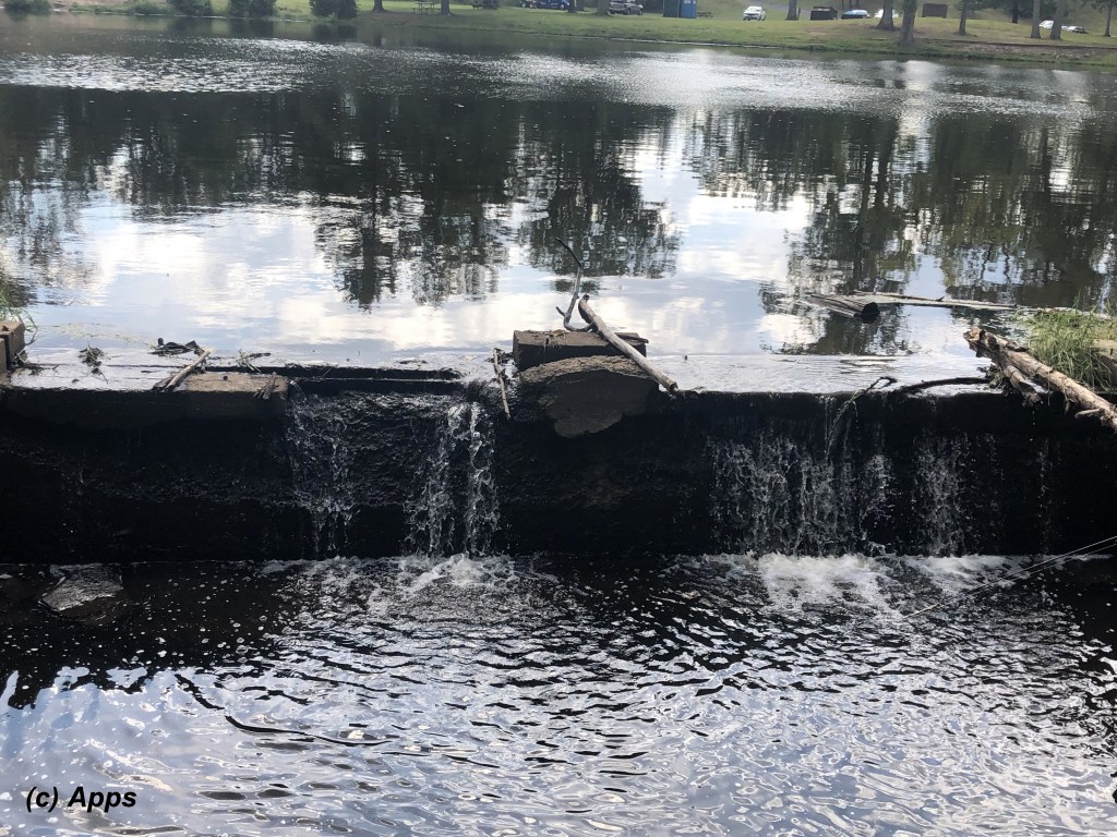 The Wharton Brook flows into the Allen Brook Pond, which is a perfect place for some fishing and swimming as well apart from picnicking. At the other end of the Pond, it flows down into Allen Brook over these man-made structure.