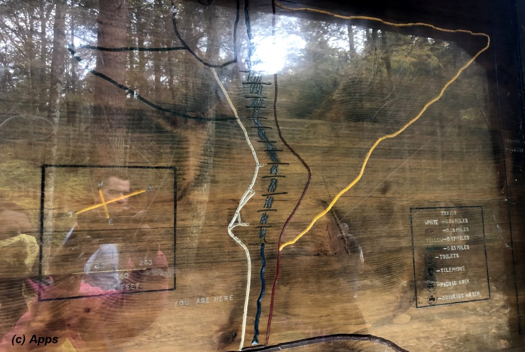 As we went up to Dugan Road, we came across this hand-written map and legend on the side. I saw this similar kind of hand-written map and legend on one of the hikes I went prior to this –  Collis P. Huntington State Park.