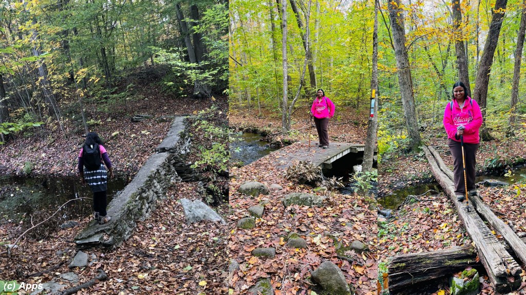 We passed several wooden bridges, some stone bridges; and some made of just fallen logs across the trail of streams extending from Pattaconk Reservoir.