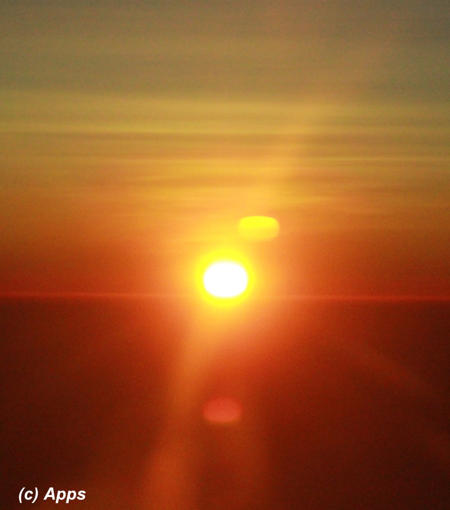 Before the sunset came into view, the direction the flight was going gave me a glimpse of the rising March Full Moon. Symbolizes the arrival of Spring in Northern Hemisphere; and aptly the Festival of Colors, Holi, is celebrated in Indian this day.