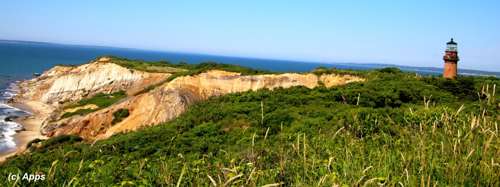 The Aquinnah Lighthouse is not complete if you havent seen the Aquinnah Cliffs, also known as Gay Head Cliffs, made of red clay laid in which some black. Legend of Moshup, that the islanders believe, says that Moshup, a benevolent giant would smash the whales against the cliffs and cook them over fire. The blood from the whales stained the cliffs red and the smoke from the fire gave the black shading to it.