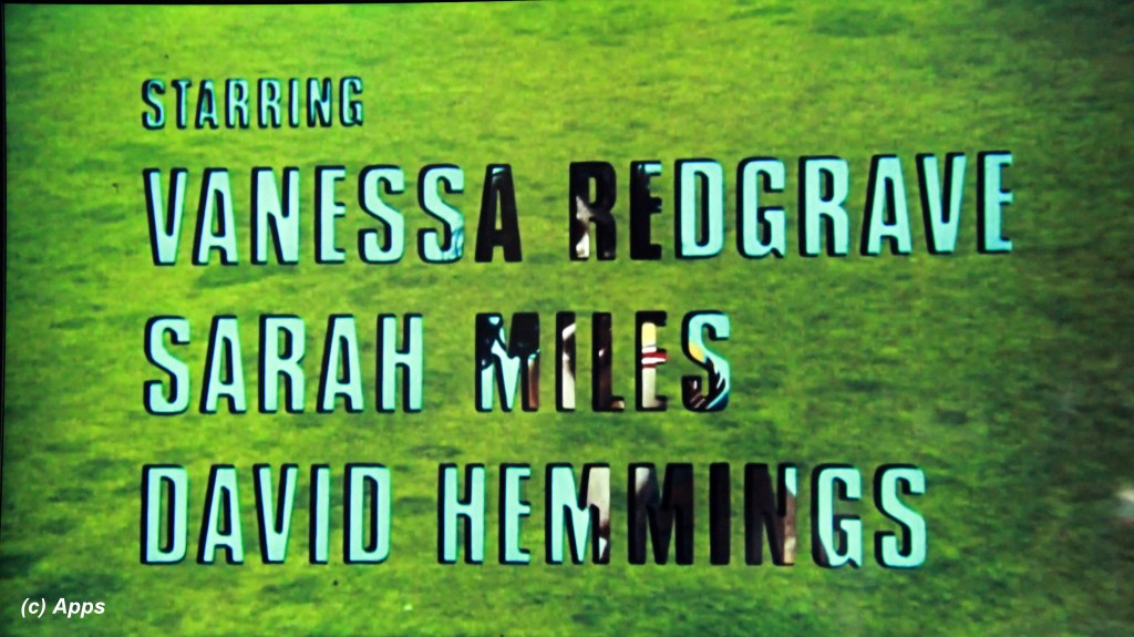 Vanessa Redgrave (portrays the role of Jane) and Sarah Miles (portraying the role of Patricia) get top billing. And yet they turn up very late in the film. Sarah Miles can be seen first 21 mins into the film and Vanessa Redgrave turns up 28 mins into the film.