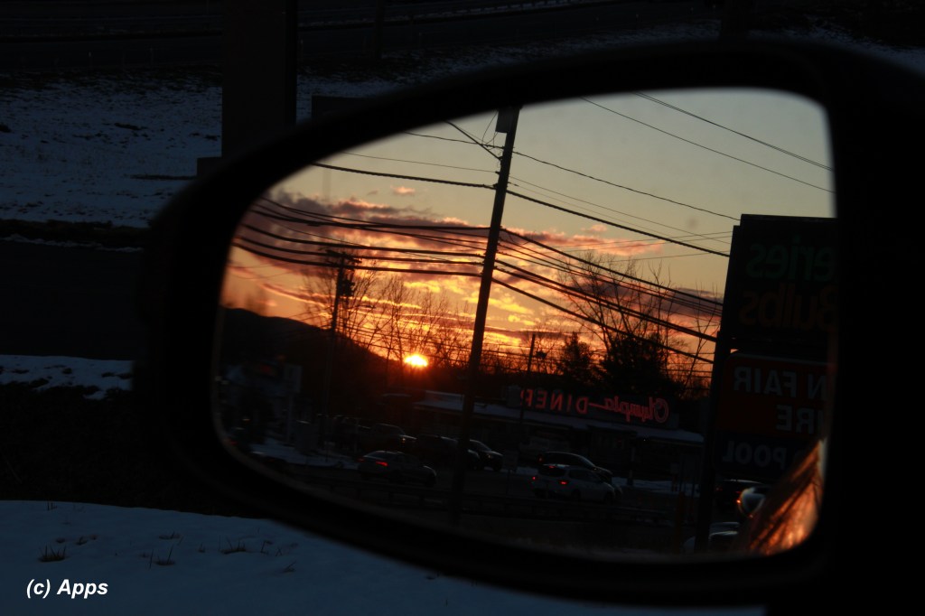 I also experimented taking sunset through my car’s side mirror. I think I might need to adjust the settings a little more, but all in all I captured the reflection of the setting sun pretty neatly. This is coming from Connecticut though. š