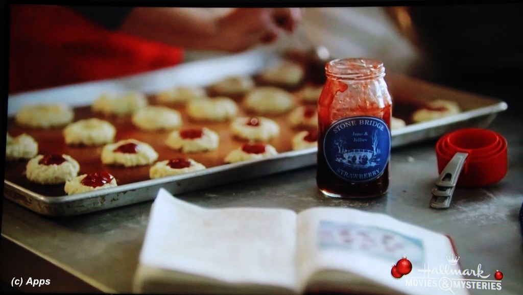 i. In the 2019 Time for You to Come Home for Christmas movie, Katherine Moss (Portrayed by Alison Sweeney) makes thumbprint jam cookies using Stone Bridge preserves, Cara Hill’s (portrayed by Megan Park) company from 2018 Time for Me to Come Home for Christmas movie.