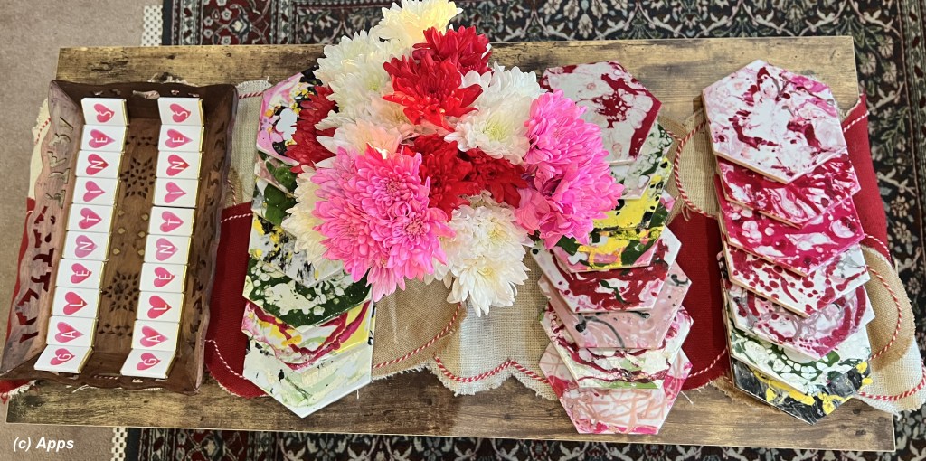 And I gave these DIY Tile trivets that I made using old nail polish to my friends as return gifts.