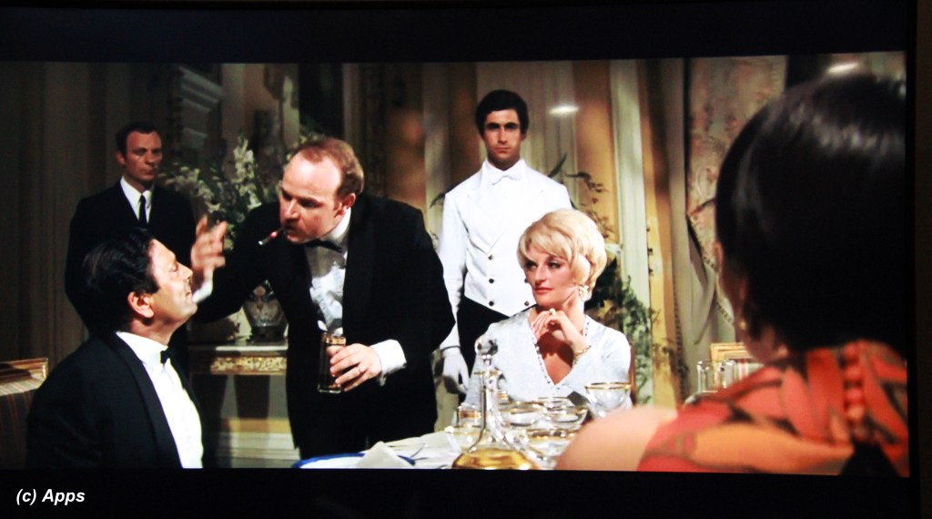 9. Director Peter Collinson’s wife Lisa Shane has a cameo appearance as the blonde wife of the visiting American at Signor Altabani’s dinner.