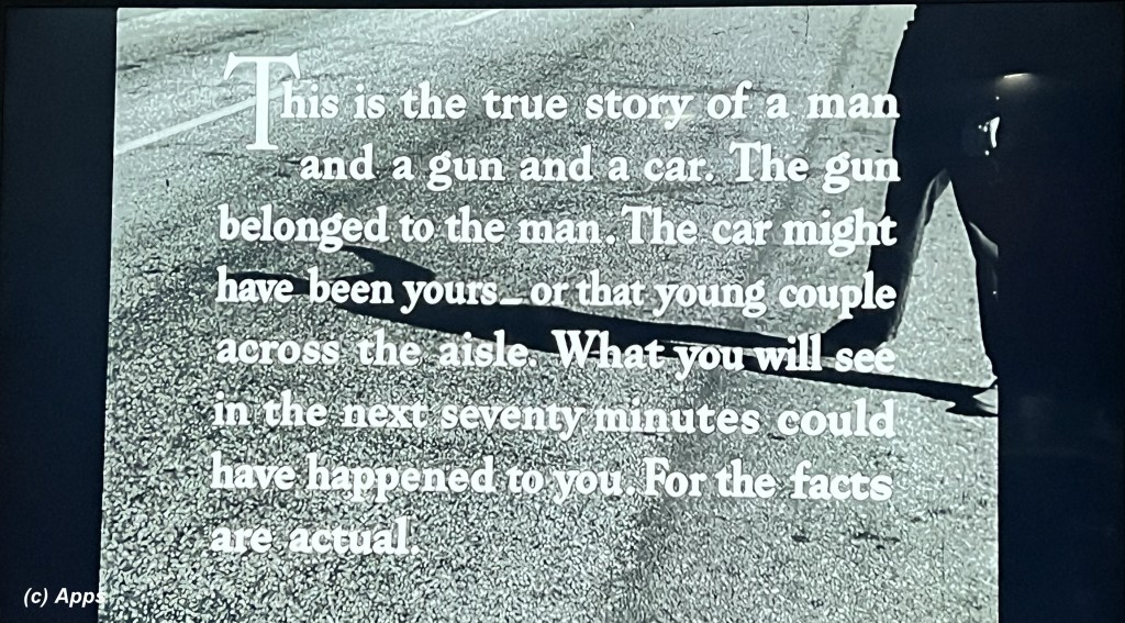 Recommendation: A tense true story of a man, a gun and a car making one think it could actually be you with the man in that car. Certainly a buried treasure and a terrific B-movie by one of the genius directors we get to see.