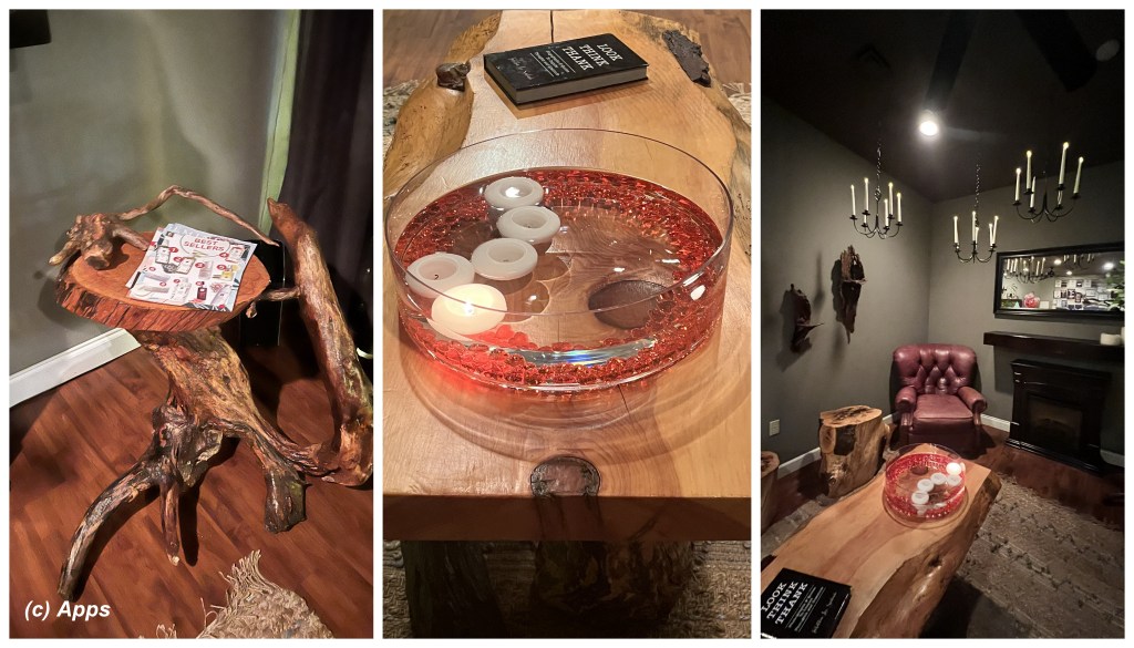 3. Pleasing ambience all through the spa, with repurposed wood used for various pieces of furniture.