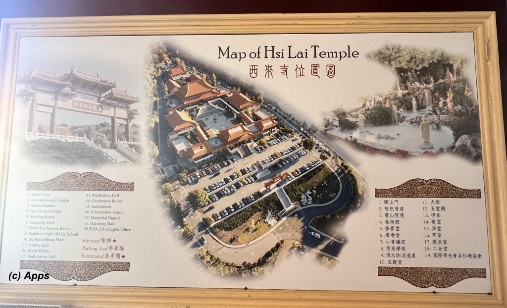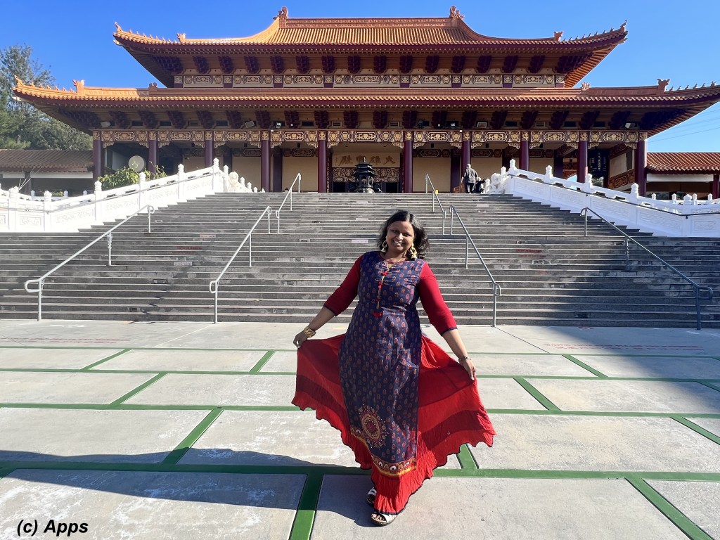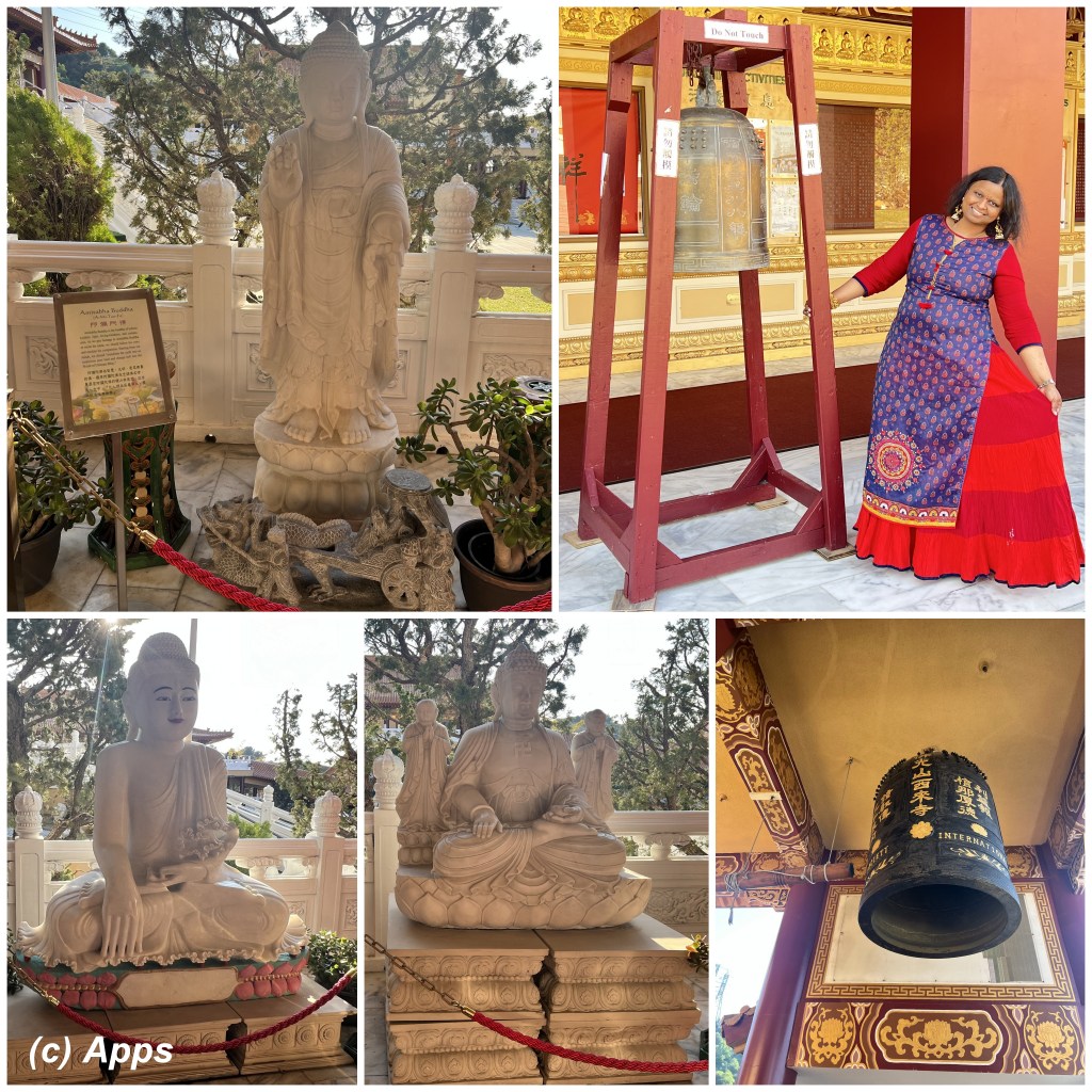 As promised in my Amalaki Ekadasi post, here I am writing about the Fo Guang Shan Hsi Lai Buddha Temple in Hacienda Heights in California that I visited during my recent trip there. It is a spiritual place to practice Buddhism and Chinese culture. Built in 1988, Hsi Lai means “Coming to the West” and signifies the dedication of the Fo Guang Shan Buddhist Order to spread the teachings of the Buddha to those in the West.