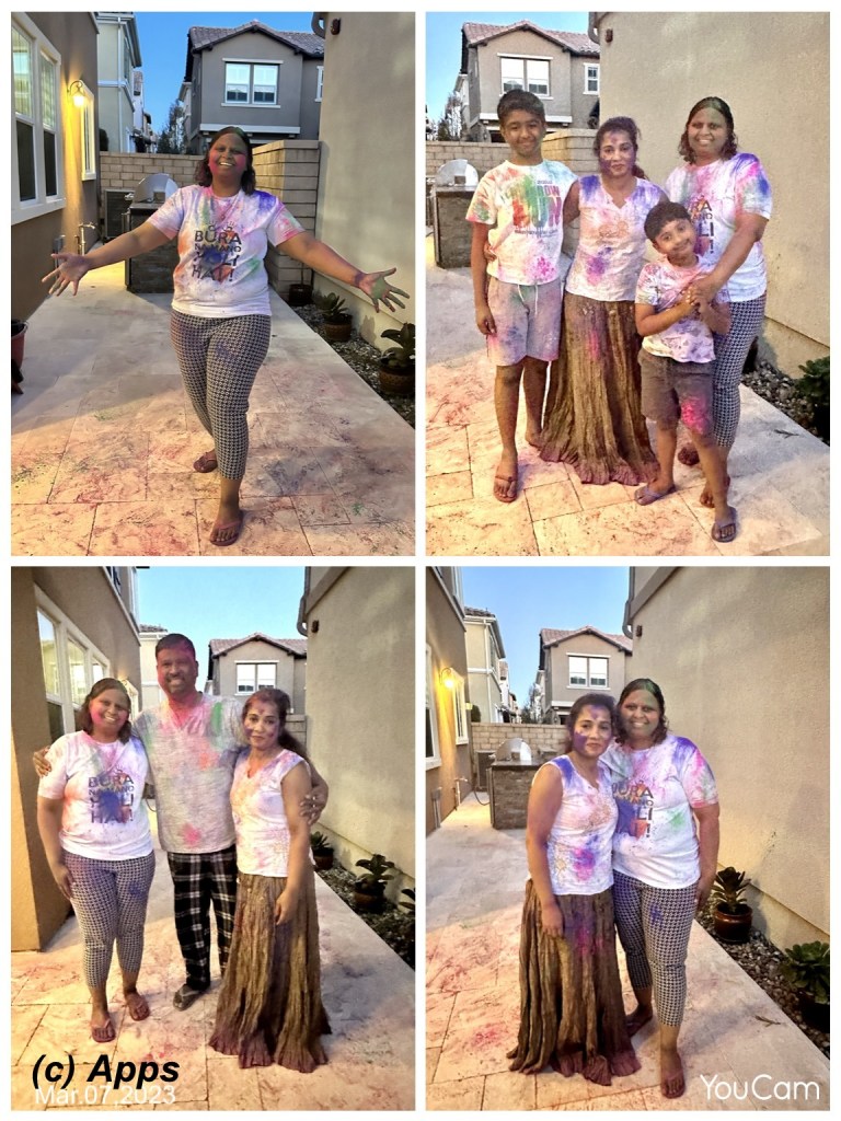 Followers worship one of the three Gods that are significant to this festival, and play with colors – both dry and wet colors – celebrating it. The festival comes in Winter where I live in America, so it is rarely that I get to celebrate it here. In the past 23 years that I have been here, I might have celebrated this festival maybe 3 or 4 times so far including this year that I was in California visiting family. It was fun to play with my brother and his family.