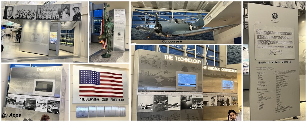 I was surprised to see a memorial dedicated to Midway Battle in Midway International Airport in Chicago, Illinois. It documents how the men of United States Pacific Fleet faced a mighty enemy fleet on Midway Island and changed the course of the Pacific War and history in 1942.