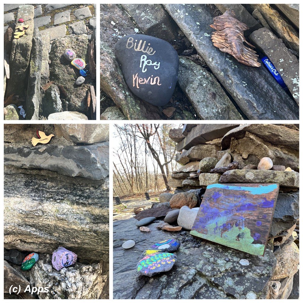 When you reach the center, breathe slowly, meditate and say a prayer staying as long as you want. We noticed several painted rocks lying around and someone’s artwork drenched in rain.