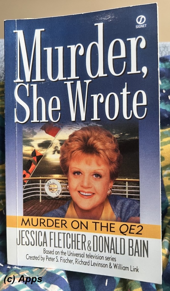 Murder on the QE2 is the ninth novel in the long-running Murder She Wrote series co-written by Donald Bain & fictional writer Jessica Fletcher. It was first published on January 1, 1997. This time Jessica travels on a free trip on the transatlantic luxury liner Queen Elizabeth 2 in return for a ew lectures aboard the liner along with scripting a play. But the leading lady is killed and Jessica finds herself investigating her death before more are killed.