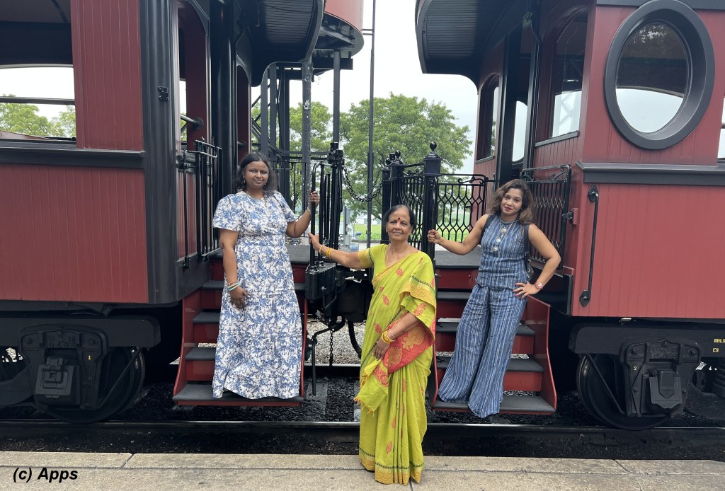 Finally the ladies of Devershetty family posing in front of the train (missing one of them).
