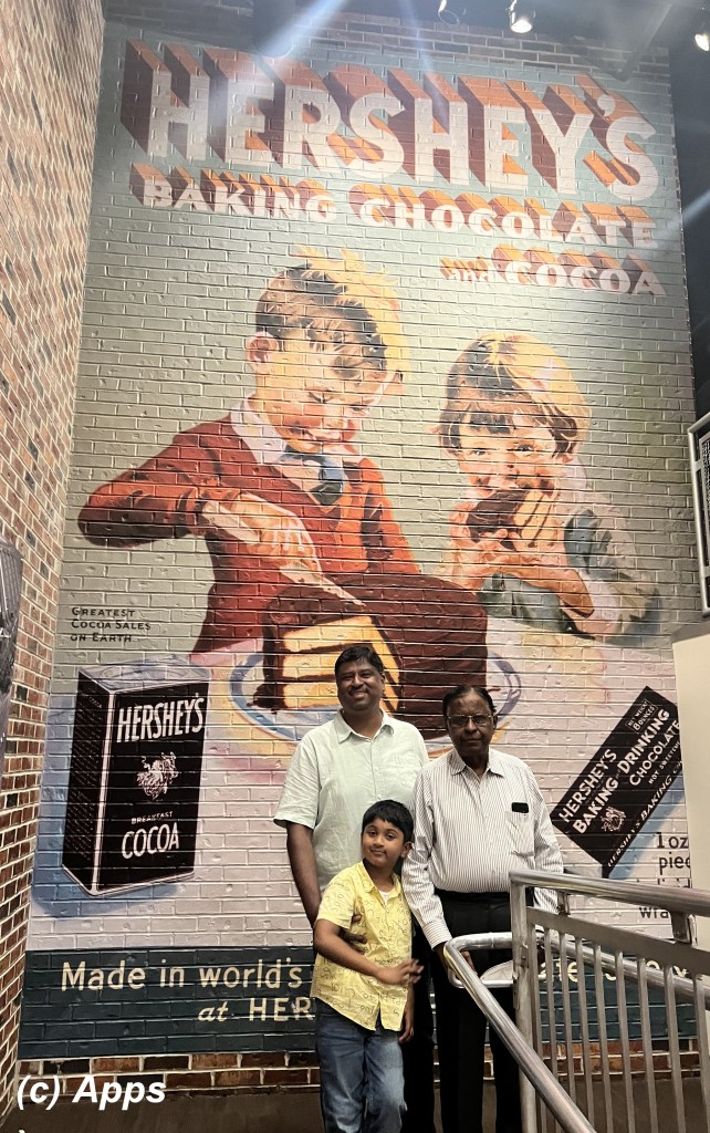 As we were taking the Hershey’s chocolate factory tour in Hersheypark in Hershey, Pennsylvania, we came across this mural on one of the walls. This show cases vintage way of baking using Hershey’s baking chocolate. I took this with my brother, father and nephew in the foreground.
