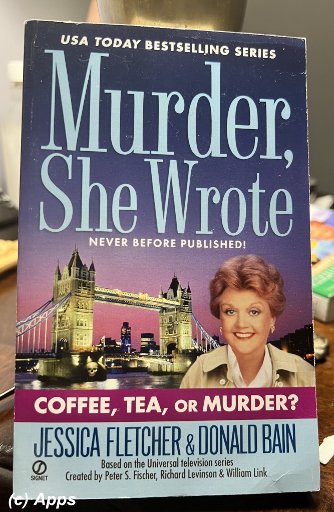 Coffee, Tea, or Murder? is the 27th novel in the long-running Murder She Wrote series co-written by Donald Bain & fictional writer Jessica Fletcher. It was first published on April of 2007. Jessica along with several of her friends from Cabot Cove take the maiden flight of the new airlines SilverAir from Boston to London. However upon reaching London they find the owner of the airlines murdered. And George Sutherland, Inspector at Scotland Yard and romantic interest of Jessica, is pulled into the investigation, and Jessica gets tugged along too. Now they have to together figure out who the murderer was before the catch their flight back to America.
