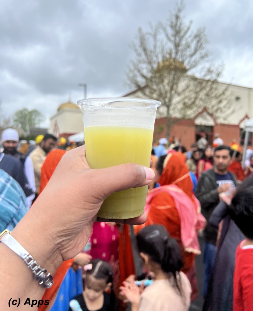 Here is a picture from a Langar that I attended a few months ago holding a glass of freshly made Sugarcane Juice.