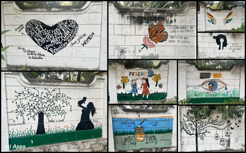 On the walls of the University College for Women, my alma mater, in Hyderabad, India, I noticed these beautiful artwork done by the students. All of it depict Women Power and induce positivity into the women world.