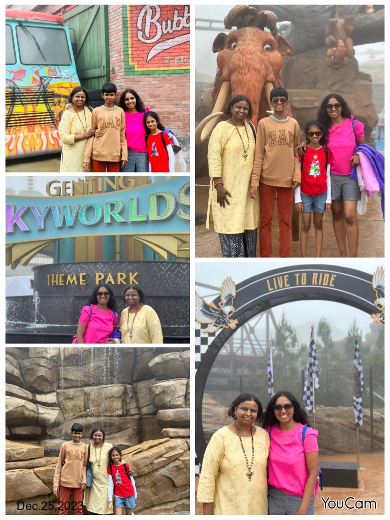 While I was in India, my cousin and I went to a three day fun-filling trip to Malaysia which is just a stone’s throw away from where my parents live in India. The first day we went to Genting Skyworlds Theme Park. Incidentally a mile from the top of the mountain it became misty and foggy, and pretty much all day the mist was constantly pouring into light rain. Yet I had fun watching my niece and nephew enjoy some rides; I rode with them on some.