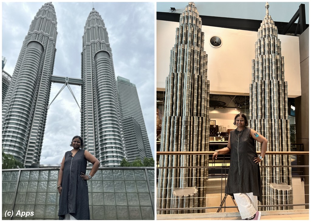 We got see the Petronas Twin Towers on our trip to Malaysia, an interlinked pair of 88-storey supertall skyscrapers. However we went on a Christmas long weekend, so didn’t get tickets to go up the Towers. Had to satisfy ourselves seeing it from outside. For some reason, these Towers cast an impression on my mind. Not sure what it was, but didn’t feel like moving from there.
