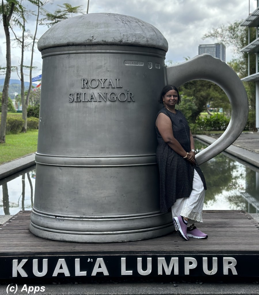 At the premises of Royal Selangor Tin Factory that we visited in Malaysia, we saw this he Tankard obviously made of Pewter Perfect backdrop for a picture.