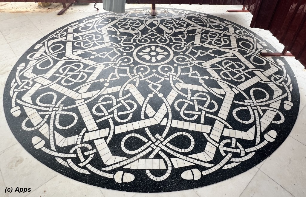 And we saw this huge mural made of tiles on the floor of the walkway. I wonder what did that depict.