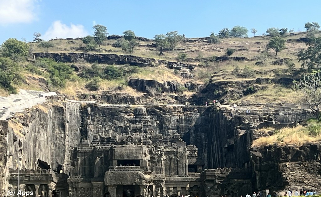 One of highlight of Ellora Caves is the World’s largest single monolithic temple, Kailash Temple, in Cave 16. A megalith carved from a cliff face, it is considered one of the most remarkable cave temples in the world because of its size, architecture, and sculptural treatment. Along with a shine for Lord Shiva the temple boasts sculptures depicting Ramayana, Mahabharata, Shiva story and Vishnu story.