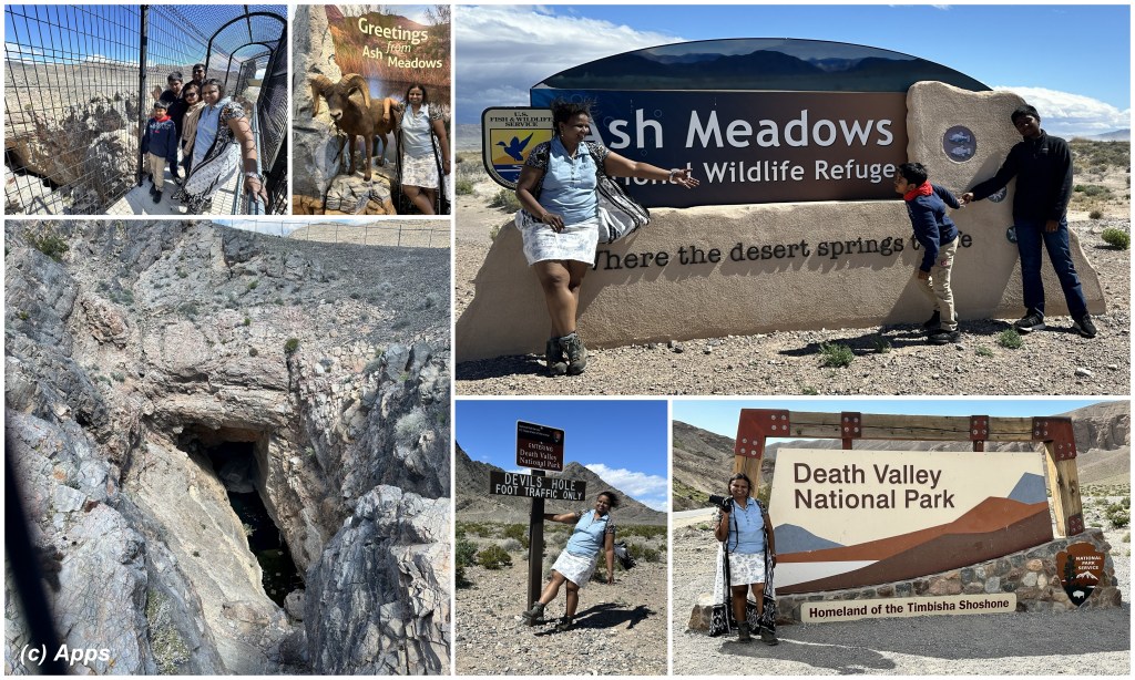On the first of the Death Valley trip last month, we covered a lot of stuff. We began with the Devil’s Hole, the dept no one knows how far below it goes. It’s a series of connecting underground tunnels that have not been explored. It is also home to a very rare fish called Pupfish that existed since last 20,000 years and only found in the past century. Next stop was Ash Meadows Wildlife Refuge. It was too windy for us to explore much, but we visited the visitor center.