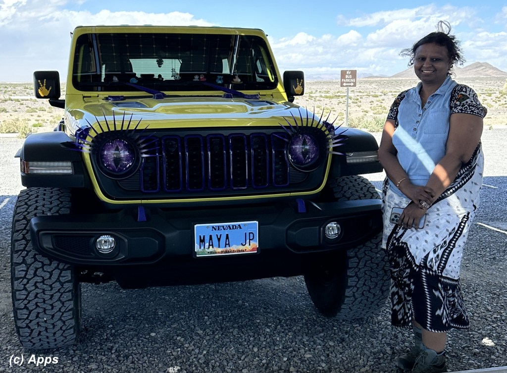 At the Ash Meadows National Wildlife Refuge’s visitor center we saw this Big-Eyed Jeep in yellow color with purple eyes. Couldn’t take a picture with this adorable buggy. 😛