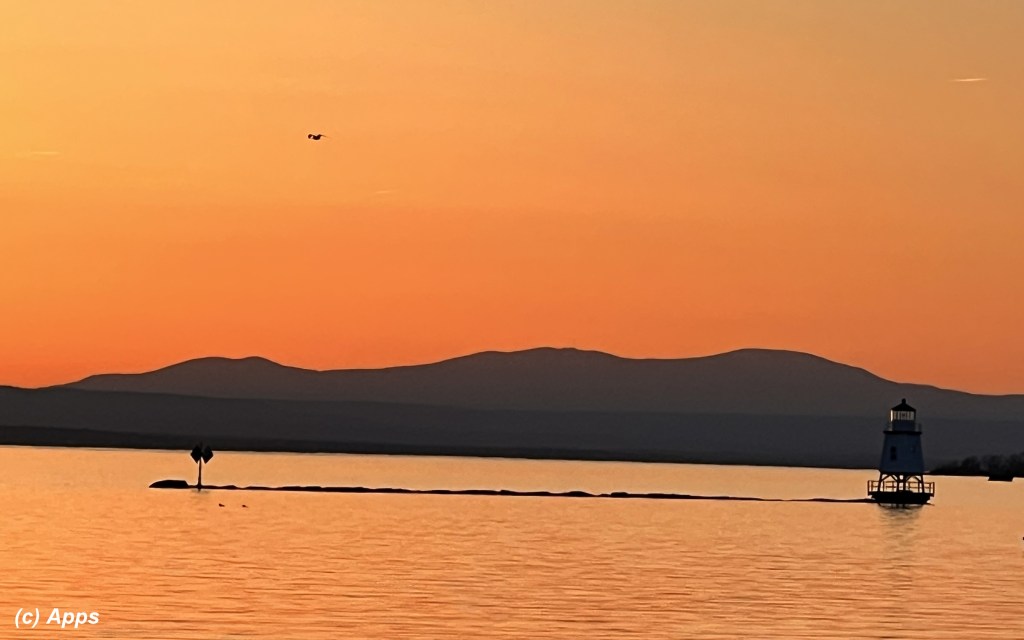 This historic lighthouse was originally established in 1857 to mark the ends of a low, detached, two piece breakwater 2⁄3-nautical-mile long which protects the Burlington, Vermont harbor from Lake Champlain. And here we see it in all it’s glory with a beautiful sunset as the backdrop.