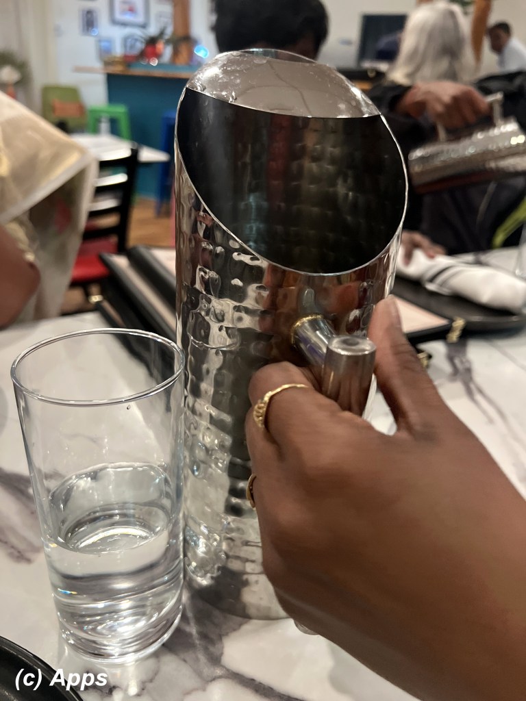 A yummy selection of food and drinks. Even the pitcher the water came in looked artistic.