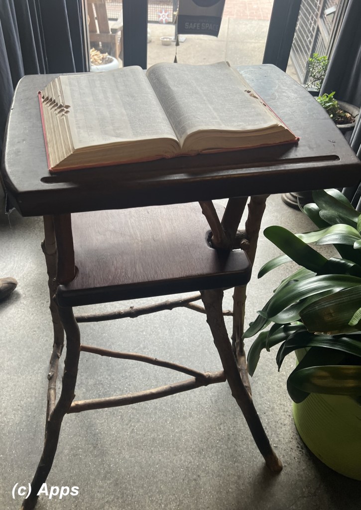 We saw this large pedestal with a very early edition of Webster’s Dictionary. Wonder why though!