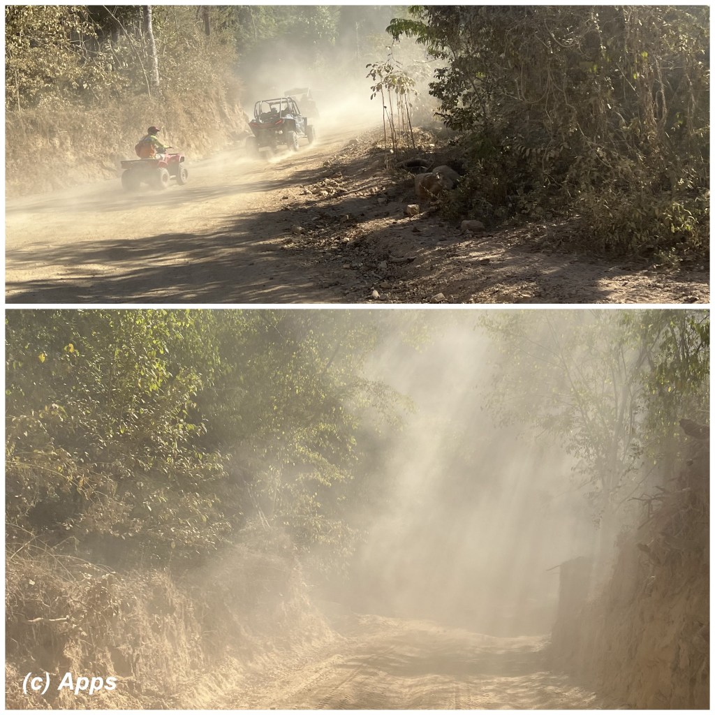 The roads were quite muddy. We also went under some manmade waterfalls that got us wet. And you see me wet in this pic when we had a rest stop middle of the trip.
