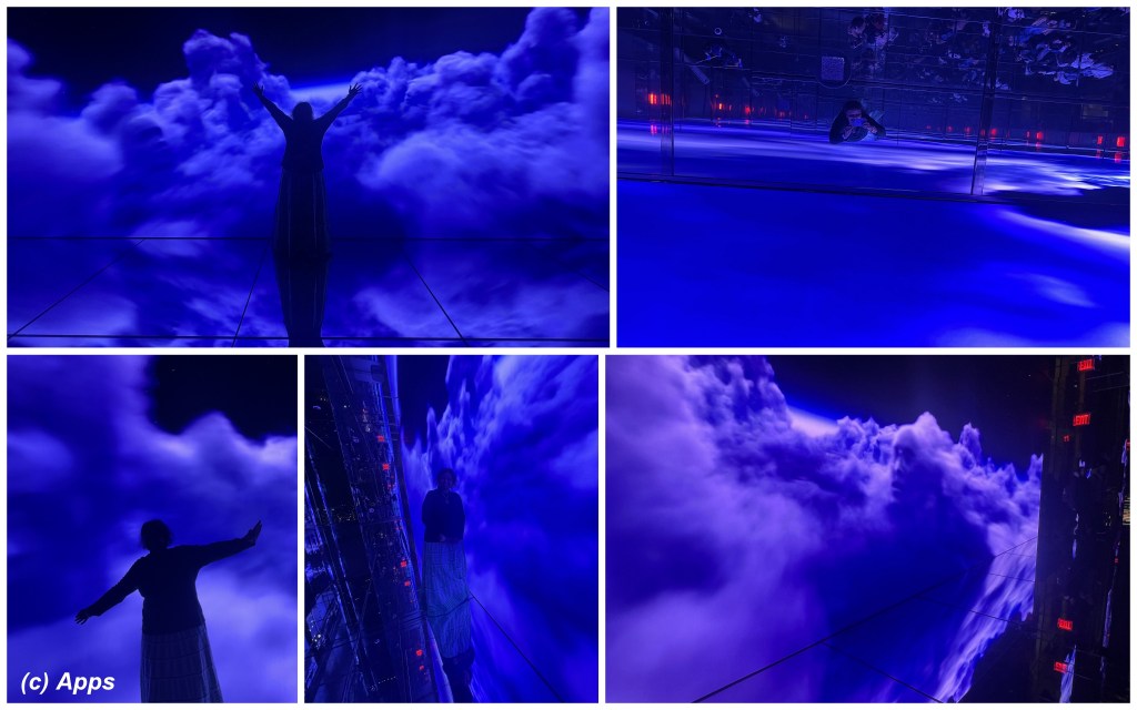 From 91st floor, we walked up to 92nd floor where we experienced Air: Unity bridging physical and digital realities, become part of the interactive experience when your face takes form in the clouds. I don’t have the pics that the digital camera in the room took, but I have the ones we took. Our faces would have been put on the clouds. This immersive digital experience was designed by Kenzo Digital.
