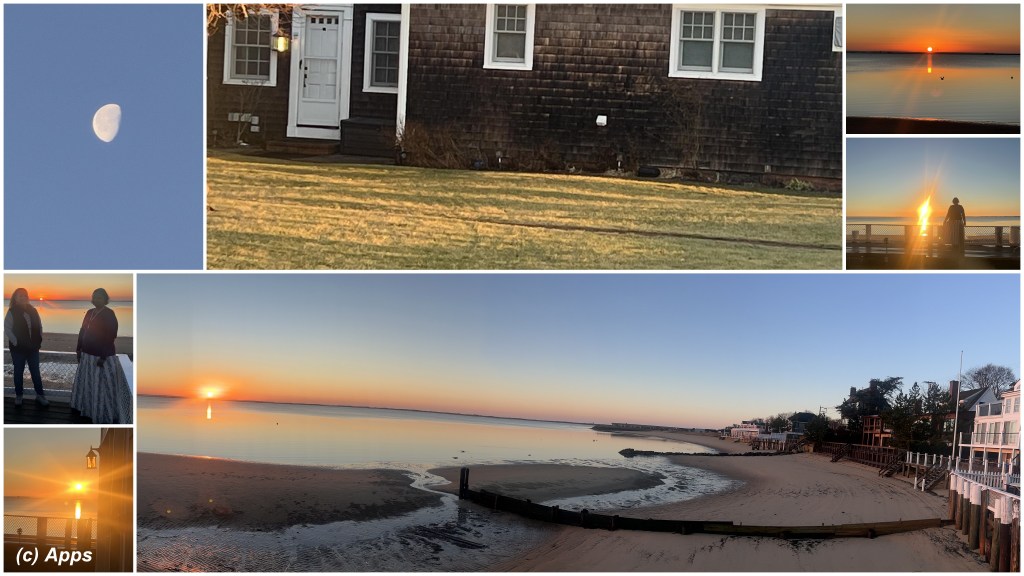 Day 2 on our trip to Cape Cod in January opened with this beautiful sunrise before we went out on our return hunt for light houses. 😛 Of course we saw some foxes too. No, we couldn’t bring them home. 😛 We captured the moon and sun at once though, if you can see in the picture (sun on left, moon on right). 😛