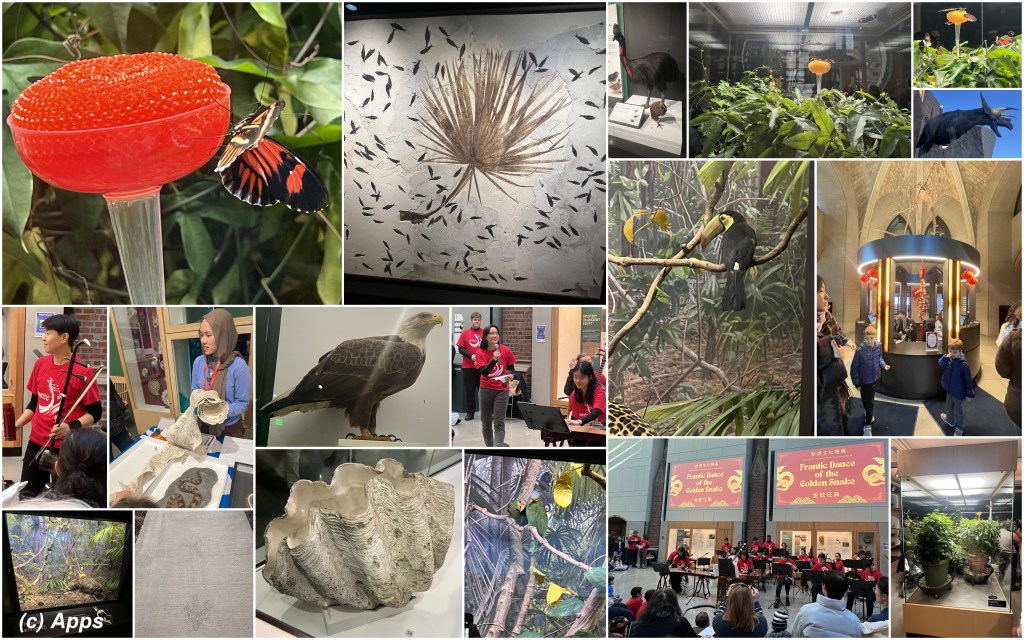 To brace from cold and also to see what other festivities the Chinese New Year held for us, we went to visit Yale Peabody Museum in New Haven, CT. Part 1 of my post highlights the glorious music we heard from one of the Choirs showcasing the Festival of Snake. Students also presented snake skin in honor of the festival, although it was cringing for me. :P. Wild life is more of mummified versions or sculptures for any museum, but we also saw real butterflies, in a very tiny Butterfly Farm. 🙂 Don’t miss the steps made by Torosaurus as we reach the museum along with it’s sculpture.