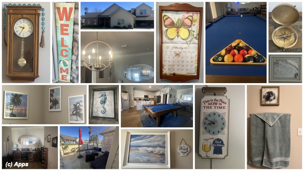 On my visit to Foley, AL to visit my friend, I stayed at her home. She had a different way of decking her house while in Milwaukee, WI. Here she made her house in synch with the shore décor. She had several art pieces, art work, and even some tea towel calendars.
