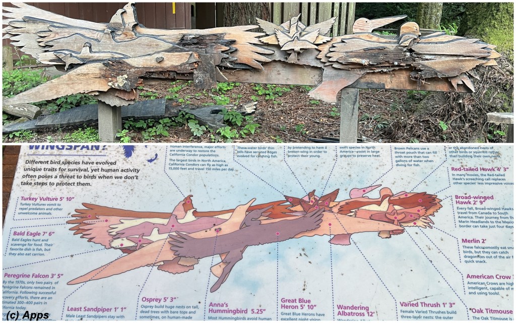 On one side of the entrance it shows a structure of various birds depicting their wing span. The diagram beside shows which one belongs to what bird.