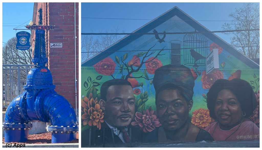 Driving by Bristol came across this mural across to Bristol Water Department and also the decoration on a larger pipe. 🙂