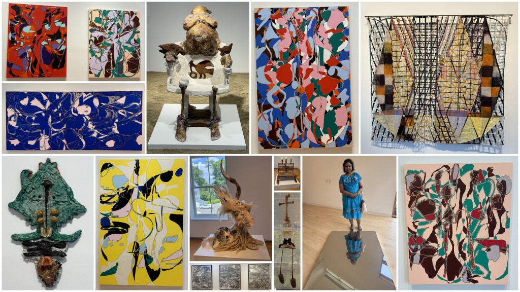 The next museum we went to Aldrich Contemporary Museum in Ridgefield, CT. We were surprised that most of the museum had few pieces in a large room. Looked like someone rich was funding the museum and most of is done as recent as 2025. None the less we saw a few pieces (From L to R, Top to Bottom) – Art work by Zak Prekop, Gives tank and Praises, Again art work by Zak Prekop, Julia Blend’s Woven in the Reeds, Her sirens of the Sea by Nickola Pottinger, Nore at by Zak Prekop, Mad to Raaatid, Marting Beck’s Triptych of Time Sounds and Sites, Memba wen wi did young by Nickola Pottinger, Sunday School by Nickola Pottinger, Stainless Steel by Martin Beck (Surprised to see a block of steel on the ground), More art work by Zak Prekop and I didn’t take picture but there was a whole wall of silk curtains as art work. *Surprised*
