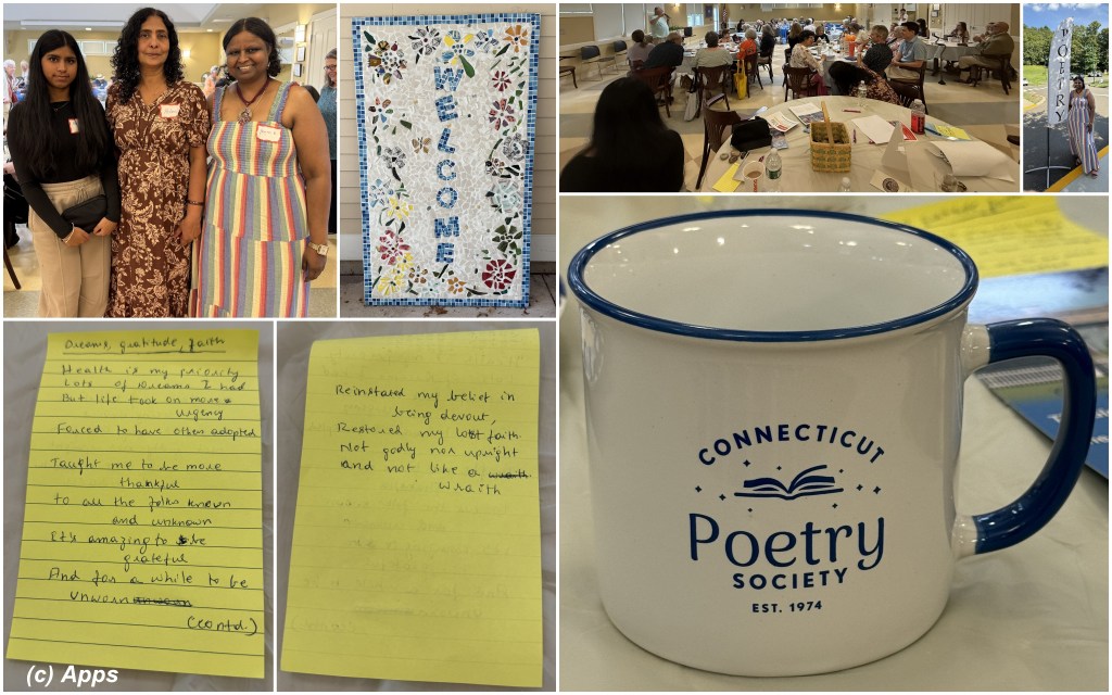 CPS aka Connecticut Poetry Society, conducted a poetry event to which I went with my friend and her daughter. They both read out their poems for open mic normally, but this time I read a poem as well. It was titled “My Hometown”. I quickly wrote a poem there as part of an exercise too.