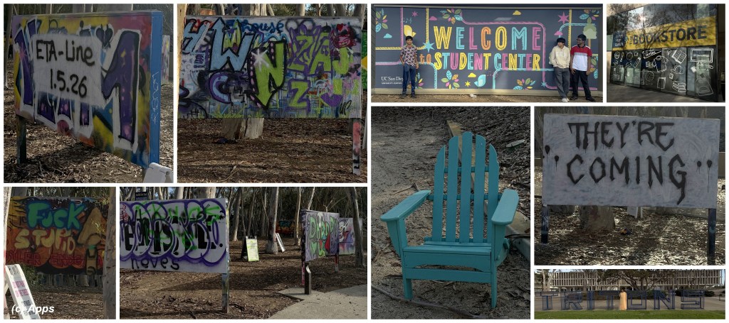 The university had so many murals all around. Some sculptures and even a Graffiti Park. Naturally I took some pics. You will see me with the Triton sculpture as well, what UCSD’s call themselves.