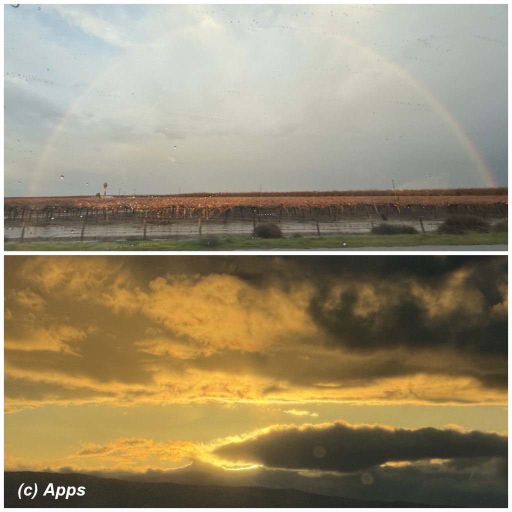 On the way from LA to Fremont while visiting my brothers in CA, we got to view a whole rainbow as it was raining. The sunset was also splendid that followed.