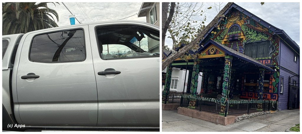 On one of the joints in Fremont, CA, we came across this colorful building. It was a cultural center and it was colored beautifully. Then we saw this van that housed a coffee cup on top of it. Wonder where the coffee was going?